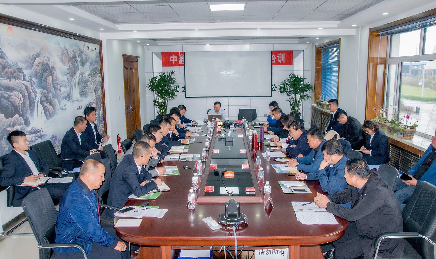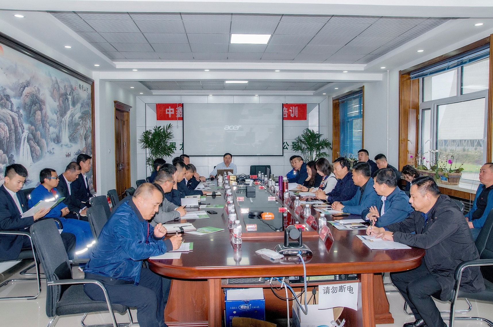 金九銀十,譽滿龍江,糧谷飄香入庫,東北寒潮來襲,凝聚人心聚力,溫暖萬戶千家!2018年10月10日,慶翔集團10月份中層以上干部工作會議在黑龍江中鑫熱電有限責(zé)任公司勝利召開,集團公司總經(jīng)理王國茂和高管成員及慶翔熱電、中鑫熱電、肇源熱電、慶安糧油各子公司主要領(lǐng)導(dǎo)和部門負(fù)責(zé)人共30人參加了會議。本次會議是在東北采暖開始和40MW新建機組并網(wǎng)發(fā)電前沖刺的關(guān)鍵節(jié)點上召開的,是溝通融合各子公司、凝聚集團干部職工的關(guān)鍵盛會。