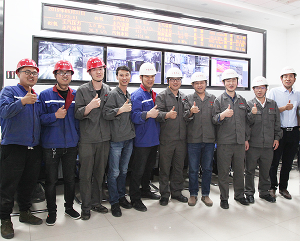 4萬機組一次并網(wǎng)成功后,集團總工程師李成玉(右三)、項目建設(shè)部長胡林桂(右一)中鑫熱電總經(jīng)理韋毅民(右二)和副總經(jīng)理李樹彬(右四)同部分生產(chǎn)、技術(shù)管理骨干在中控室露出歡快的笑容!